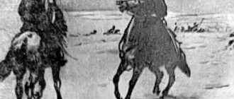Гринев отвечает, что разбой – это все равно, что «клевать мертвечину». Пугачев удивлен его словами. Наконец, впереди показывается крепость…